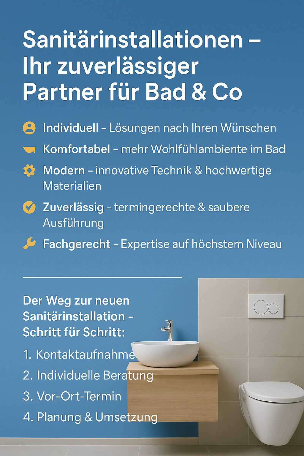 Individuelle Sanitärinstallationen vom Fachbetrieb – von der Badmodernisierung bis zur Neuinstallation. Jetzt beraten lassen & Wohlfühlbad planen!